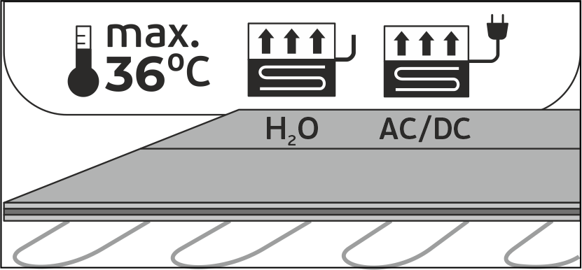 3.4 При использовании электрической системы тёплого пола мощность нагрева не должна превышать 150 Вт/м2. При использовании водяной системы тёплого пола температура подачи теплоносителя не должна превышать +36°C.