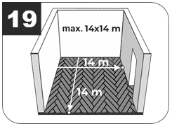 7.10 Площадь максимально возможной беспороговой укладки до 196 м² при условии, что максимальная длина и ширина беспрерывного ряда должна составлять не более 14 м. При отсутствии разрывов в укладке кварцевого ламината в дверных проемах общая длина или ширина – это сумма длин или ширин всех комнат